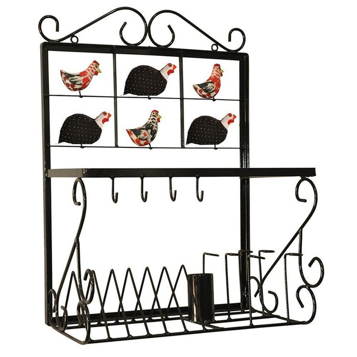 Paneleiro de Parede Escorredor de Pratos, Copos e Talheres de Ferro Galinha Mista