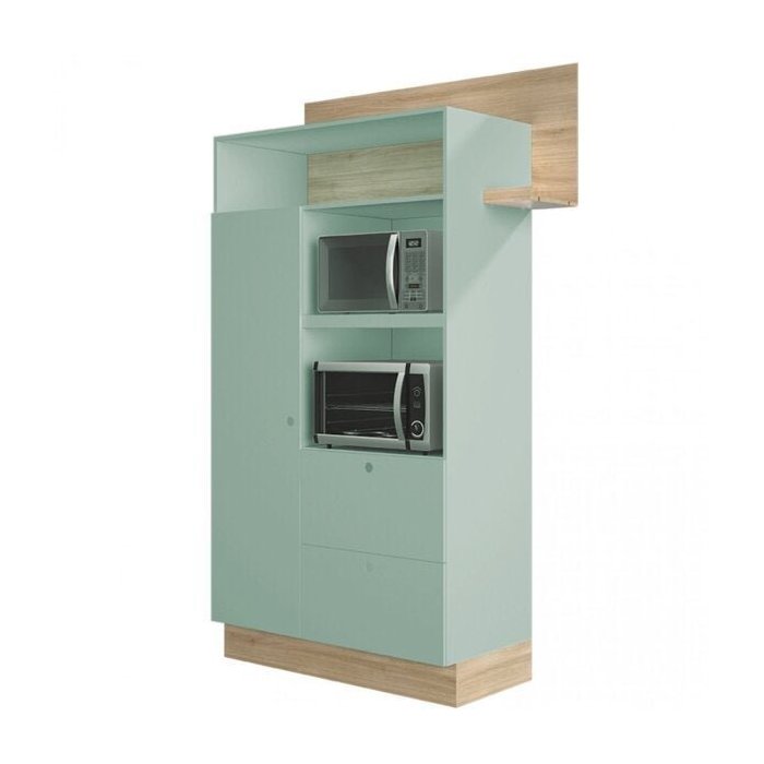 Paneleiro Duplo com Torre Quente 1 Porta e 2 Gavetas Divicar Verde/Carvalho Treviso