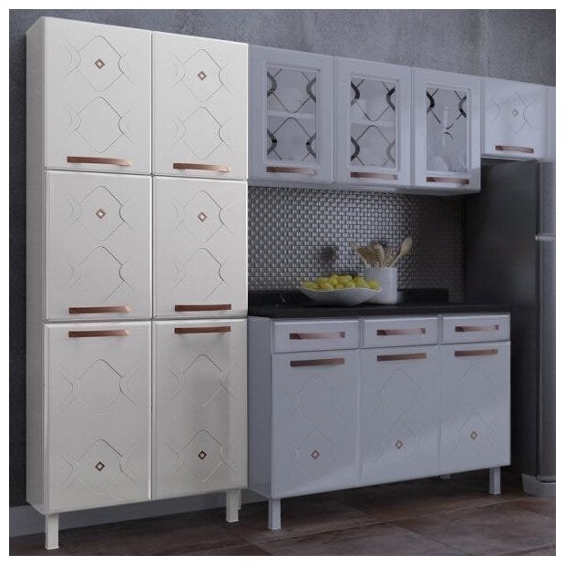 O Paneleiro duplo da Mirage New alia beleza e funcionalidade em um só produto. Possui divisórias internas que acomodam perfeitamente louças, panelas e eletrodomésticos. Os detalhes desse módulo, como puxadores na cor Cobre Fosco e apliques resinados conferem um ar de modernidade e sofisticação ao ambiente. Fabricado em aço, o paneleiro recebe pintura eletrostática e anticorrosiva, com acabamento brilhoso. O tratamento recebido na pintura garante resistência e durabilidade ao móvel. Para conservar o seu paneleiro, utilize apenas pano umedecido em água e sabão neutro durante a limpeza; desta forma, você manterá seu móvel lindo e brilhante por muito tempo. Leve mais beleza e funcionalidade para a sua casa.