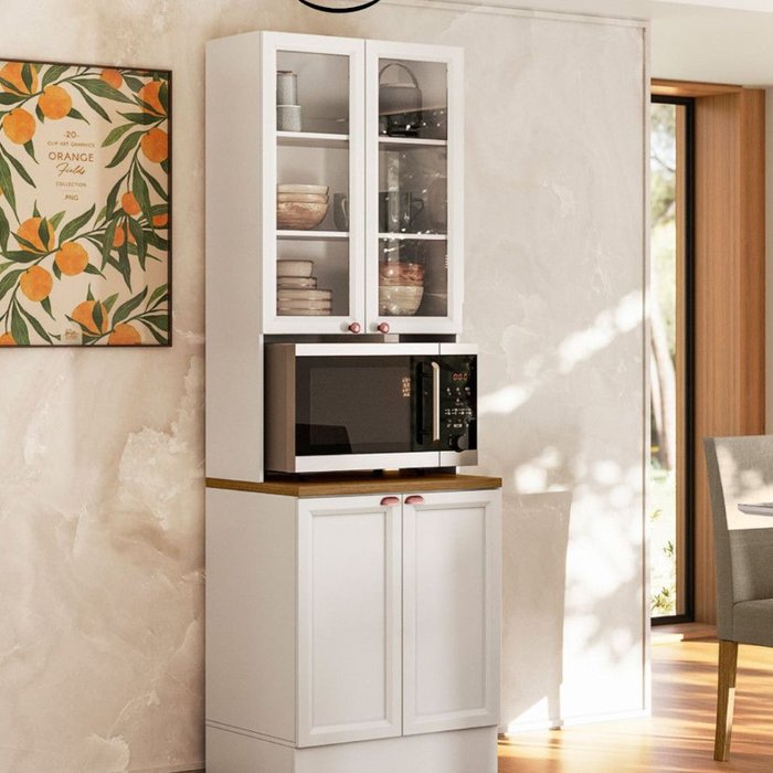 O Paneleiro Duplo para Forno ou Micro-ondas Unna da Poliman Móveis é um produto elegante com excelente espaço interno. São 4 portas de bater sendo 02 delas molduradas com vidro transparente, 3 prateleiras internas, dobradiças reforçadas de 35mm, possui um espaço para micro-ondas ou forno (A.41cm x L.67cm x P.50cm), puxadores modelo retro em polímero com acabamento em alta cobertura para deixar seu móvel ainda mais elegante, contém pés em PVC reguláveis ao piso de 14,5 cm que permitem o nivelamento perfeito, também acompanha rodapés removíveis com presilhas modelo click que facilita na hora de fazer a limpeza. Estrutura em MDP Perffect Touch de maior resistência e com proteção Bacterban que inibe a proliferação de fungos e bactérias na superfície do móvel, as portas são almofadadas/molduradas em MDF inspiradas nas clássicas cozinhas americanas. Produto ecologicamente correto com embalagens preparadas para evitar avarias e permitir que o produto chegue em perfeito estado em sua casa. Perfeita combinação com os mais variados ambientes. Qualidade que só a Poliman oferece em seus produtos.