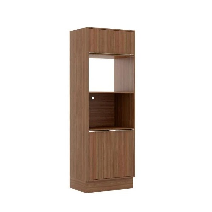 Paneleiro Multimóveis Calábria para Forno e Micro-ondas 5404R Nogueira com Rodapé Nogueira