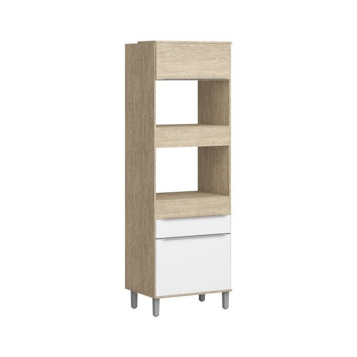 Paneleiro Torre Quente 3 Portas 1 Gavetas com Pés Modulado Slim Decibal Acácia/Branco