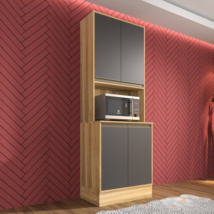 Paneleiro Torre Quente 4 Portas Amanda Sallêto Móveis Carvalho/Grafite