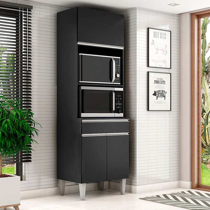 Paneleiro Torre Quente C/ 2 Nichos 3 Portas 1 Gavetas - Preto Ajl