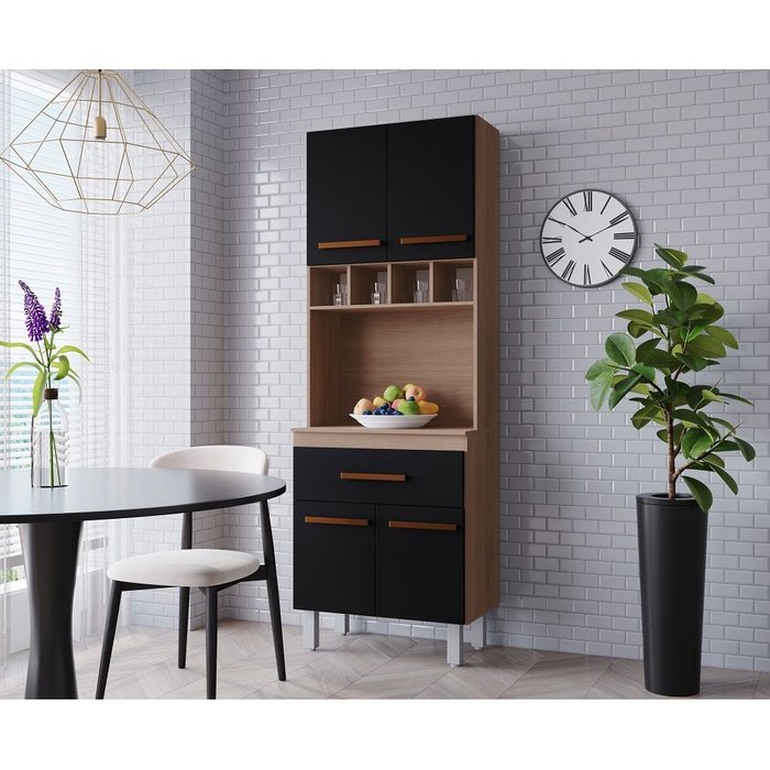 Paneleiro Vitória com Adega 4 Portas 1 Gaveta - Savana/preto Móblis