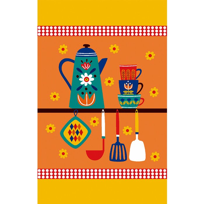 Pano de Copa Lepper Vintage Estampa Utensílios 40cmx60cm Laranja