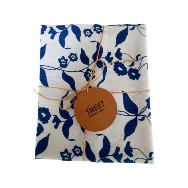 Pano de Louça Sweet | Casa Floral Azul Pack com 03 unidades branco com estampa floral azul