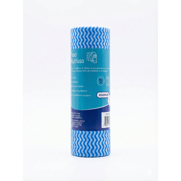 Pano Descartável Multiuso em Rolo - 50 Unidades (25x30 Cm) - Alta Absorção Azul