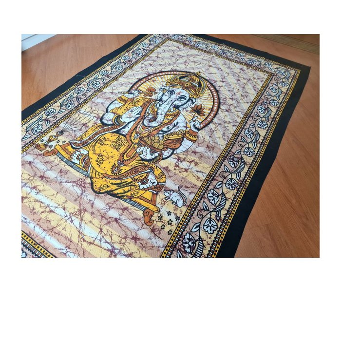 Panô Indiano de Algodão Solteiro Estampa de Ganesha Amarelo