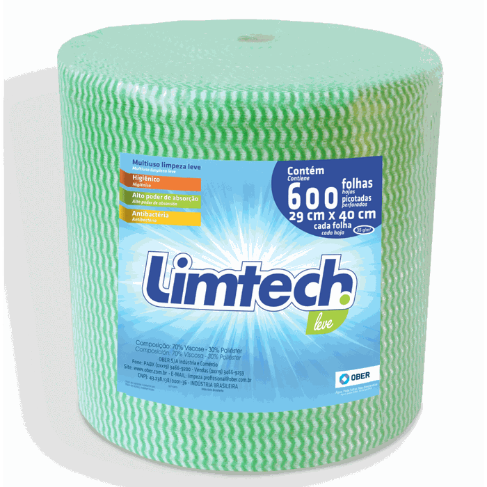 Composição: 70% Viscose e 30% PoliésterConteúdo e Dimensões:01 Rolo de 240m com 600 FolhasCada Folha mede 29cm x 40cmInstruções de Conservação:* Lavagem a mão* Não alvejar* Não secar em tambor* Secagem em varal* Não passar a ferro* Não limpar a seco* Limpeza a úmido profissional, processo normalInformações Técnicas:Modelo: LimtechMarca: OberAviso:Foto: Imagem Meramente Ilustrativa.Garantia (Fabricante): Contra Defeitos de Fabricação.