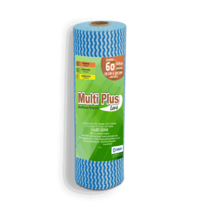Descrição:Surpreenda-se na hora da limpeza com ótima absorção, praticidade e respeito à natureza. Produzidos com alta tecnologia Spunlace, processo a jato de água, asseguram resistência e maior durabilidade em seus diferentes tipos de uso. Os panos já vêm picotados e são reutilizáveis.Características:Tipo: Pano MultiusoGramatura: 35g/m²AntibacterianaComposição: 70% Viscose e 30% PoliésterConteúdo e Dimensões:01 Rolo de 30m com 60 FolhasCada Folha mede 29cm x 50cmInstruções de Conservação:* Lavagem a mão* Não alvejar* Não secar em tambor* Secagem em varal* Não passar a ferro* Não limpar a seco* Limpeza a úmido profissional, processo normalInformações Técnicas:Modelo: MultiplusMarca: OberAviso:Foto: Imagem Meramente Ilustrativa.Garantia (Fabricante): Contra Defeitos de Fabricação.