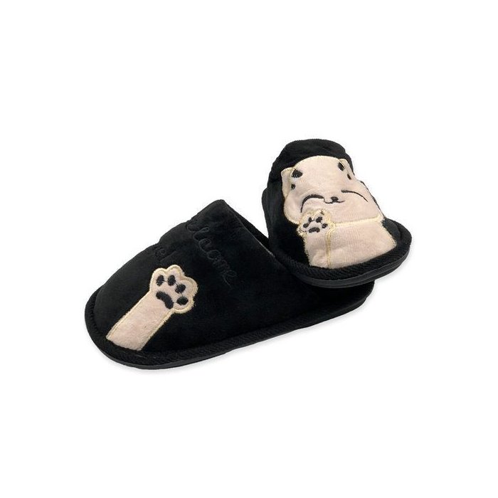 Pantufa Infantil Confortavel Design Gatinho Tamanho 30 31 Preta Felpuda Preto
