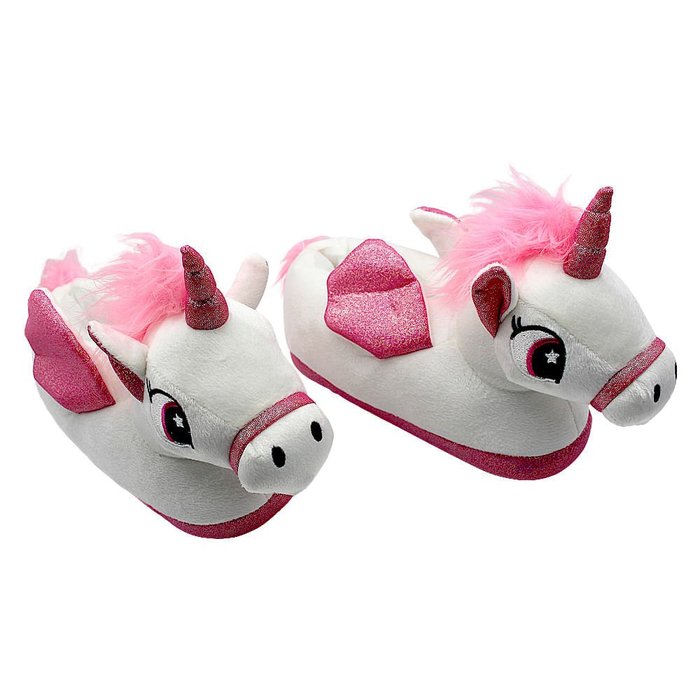 Pantufa Unicórnio com Asas Tamanho P 33/34/35 Branco e Rosa Zona Criativa