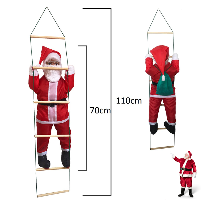 O seu próximo Papai Noel subindo a escada, é um enfeite para a decoração