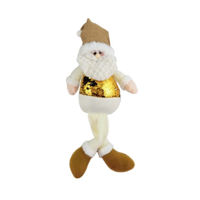 1 Papai Noel Sentado com pernas Soltas Branco e Dourado com Paetê e Gorro.
