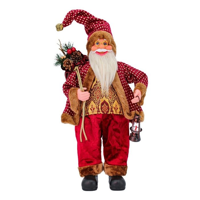Papai Noel Casaco Vinho Luxo com Lampião e Saco Presentes 62cm - Magizi