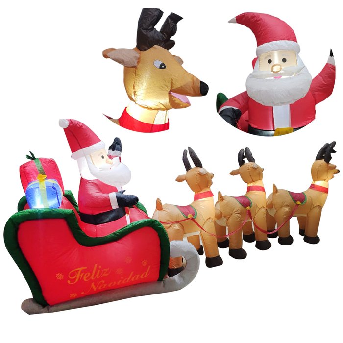 Lindo Papai Noel inflavel no Treno com renas super fofas. Perfeito para colocar em sua loja ou em um ambiente familiar.