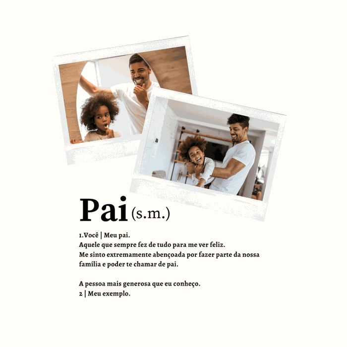 Escolha entre diferentes tamanhos, estilos de molduras e opções para criar um presente que seja tão único quanto seu pai. Nosso processo de pedido é simples e rápido, garantindo que você receba seu presente a tempo para o Dia dos Pais.