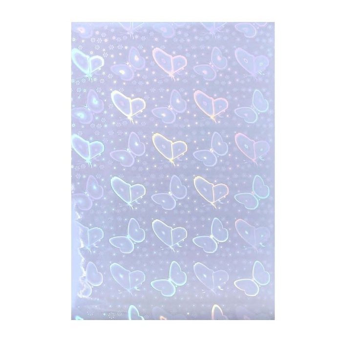 01 Pacote com 50 folhas Papel Adesivo Holográfico Vinil Borboletas A4.