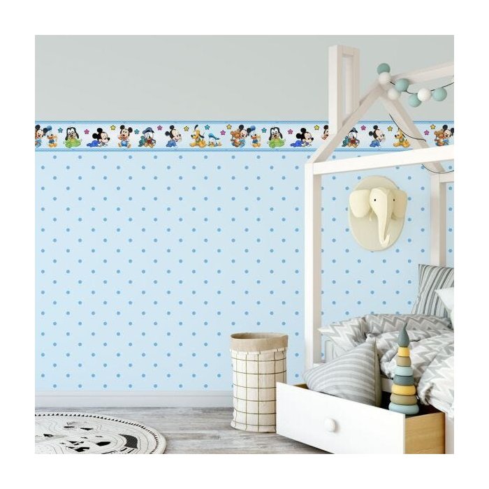 Papel Adesivo Meia Parede Mickey Baby - 10 Rolos de 150x50cm