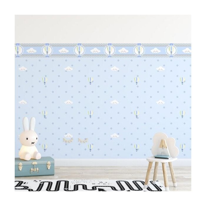 Papel Adesivo Meia Parede Nuvens e Balões Azul - 4 Rolos de 150x50cm