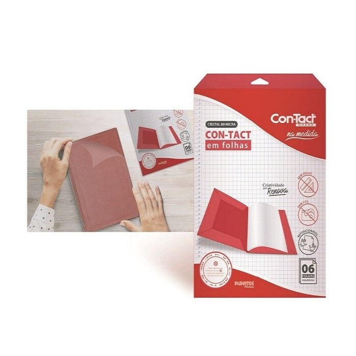 Cada Embalagem vem com 06 folhas de Contact Cristal na medida 45cm x 30cm, tamanho ideal para encapar materiais escolares.