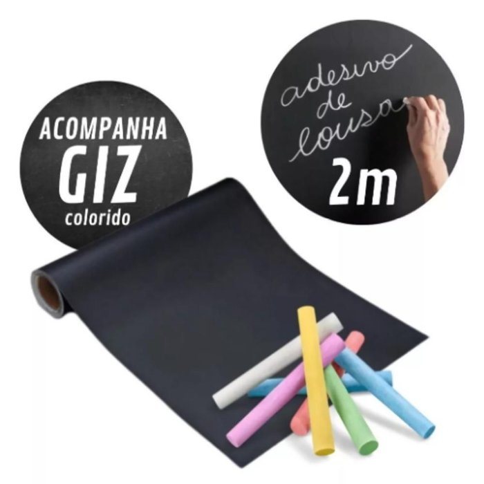 Funciona como um quadro negro adesivo, onde você pode escrever, apagar e reescrever quantas vezes quiser usando giz comum. Perfeito para transformar paredes, portas e móveis em espaços de anotações, desenhos, cardápios, recados e muito mais.