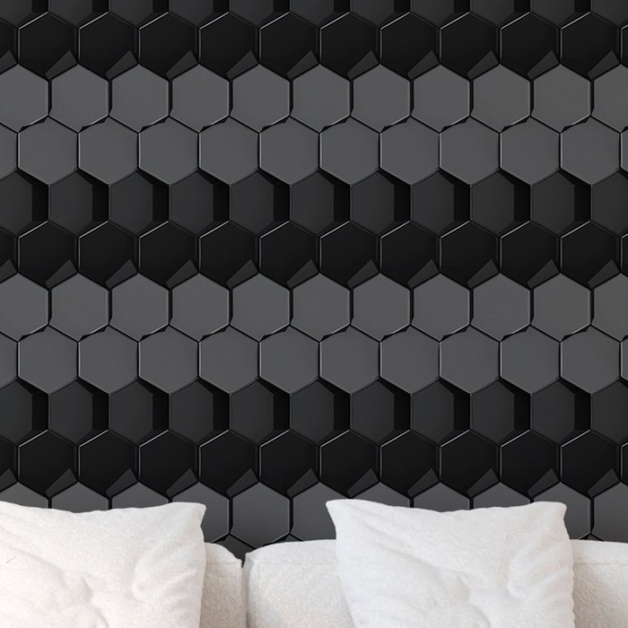 Papel de Parede 3d Auto Adesivo Geométrico Efeito Colmeia Preta Vinil Lavavel Quarto Sala 6m