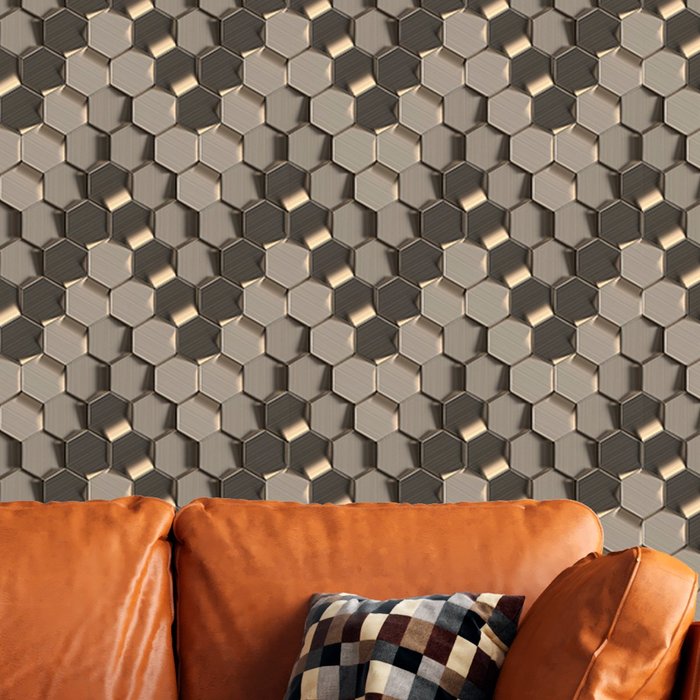 Papel de Parede 3d Auto Adesivo Geométrico Efeito Mini Colméia Dourada Quarto Sala Cozinha 3m Dourado