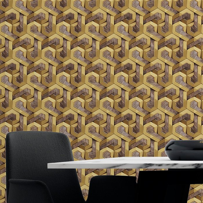Papel de Parede 3d Auto Adesivo Geométrico Efeito Tijolinho Letra P Maderia com Ouro Decorado 6m