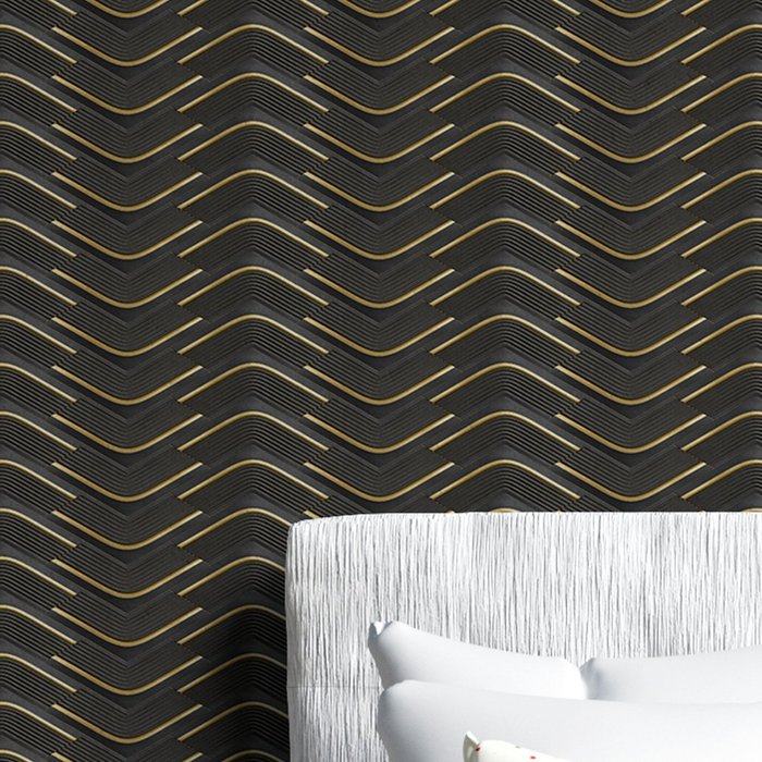 Papel de Parede 3d Auto Adesivo Geométrico Linha Onda Dourada Neon Decorada Vinil 6m Dourado