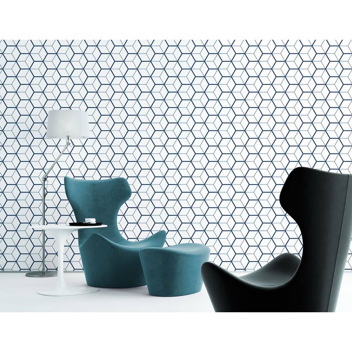 Papel de Parede 3D - Geométrico 3D Azul e Branco