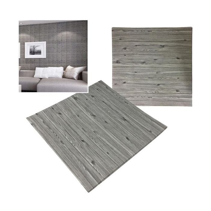 1x - Papel de Parede 3d Placa Painel Madeira Cinza 70 x 70 cm