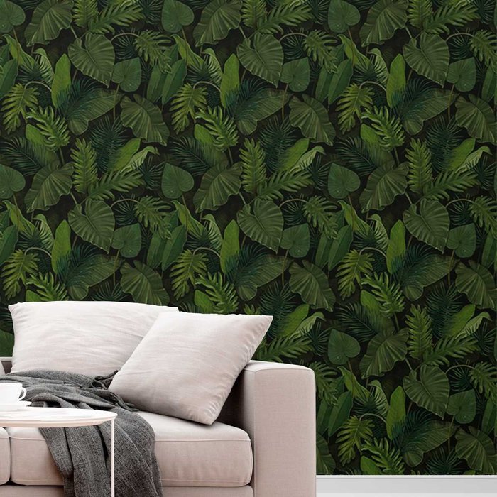 Papel de Parede 3M Adesivo Jardim Folhas 3d Verde Escuro Estilo selva Amazônica Auto Colante