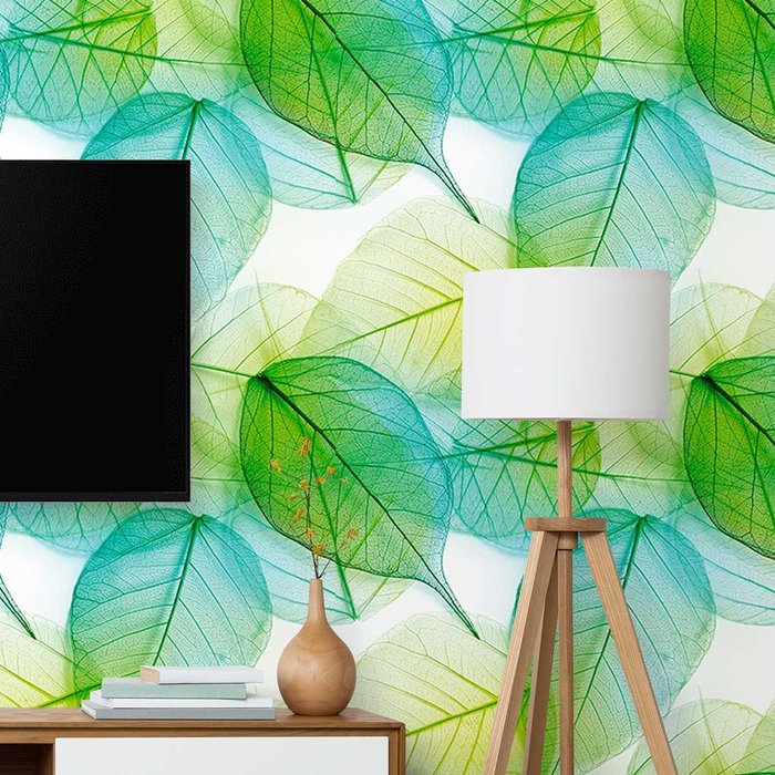 Papel de Parede 9M Adesivo Folha De esqueleto verde Estilho folhagem Rendada Auto Colante vinílico