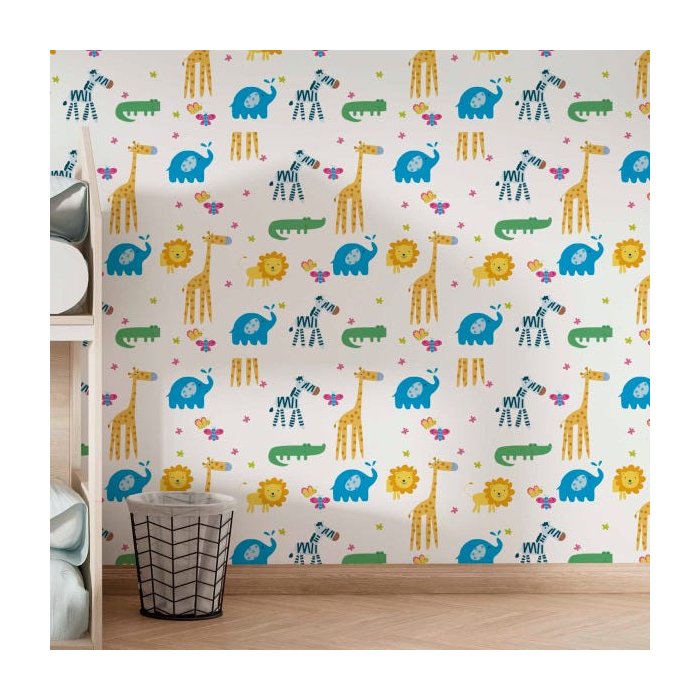 Papel de Parede Adesivo Animais Safari Quarto Infantil 5m