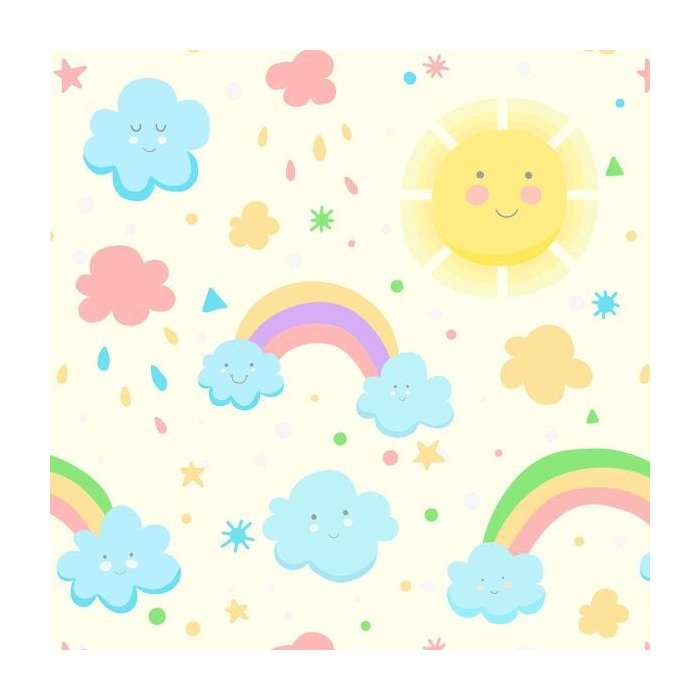 Papel de Parede Adesivo Arco Íris Nuvem Sol Céu Fundo Amarelo - SSIN-005 - ROLO - 2M X 50cm ( 1M² )