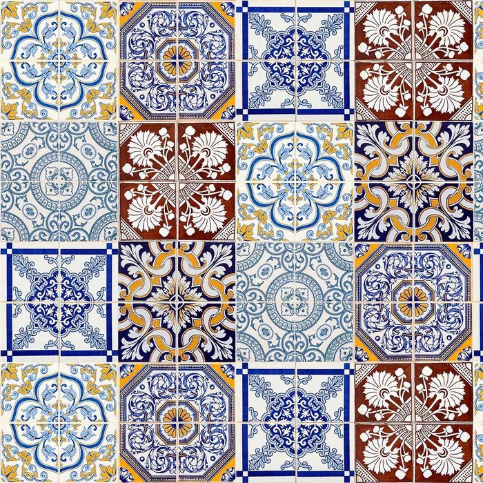 Papel de Parede Adesivo Azulejo de Cozinha Azul Amarelo Marrom - Ssaz-108 Azul, Amarelo, Marrom