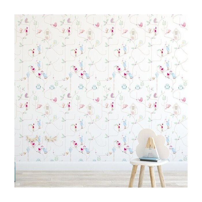 Papel de Parede Adesivo Baby Jardim Encantado Branco - 4 Rolos 300x50cm