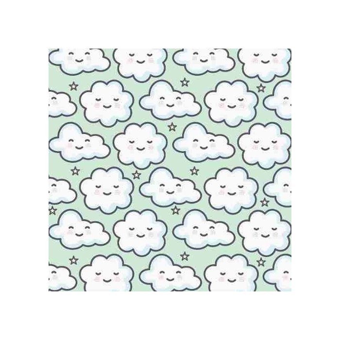 Papel De Parede Adesivo Baby Nuvem Branca Feliz Fundo Verde