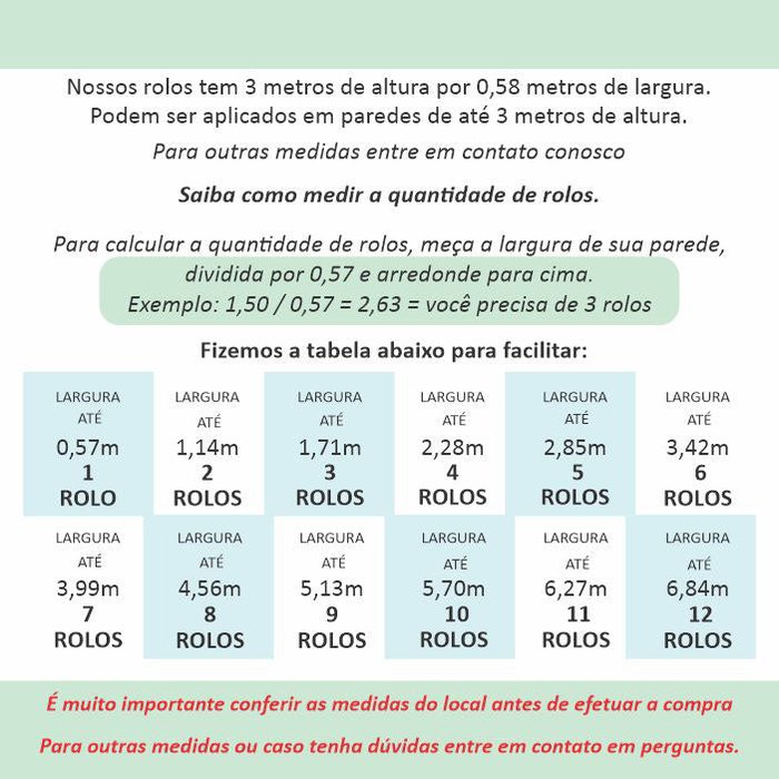 Você é adepto ao Faça Você Mesmo DIY? Então vai amar essa novidade, O Papel de Parede Adesivo , basta remover uma película protetora e fixar na parede limpa e lisa, fácil assim... sem precisar de preparação de cola. Material 100% pvc vinílico, Antibactéria, Resistente a Água.Reforme sua casa sem quebra-quebra. Renove os ambientes como quartos, salas, hall, corredor, banheiro, cozinha, escritório, área externa entre outros, basta soltar a criatividade. Medida disponível: 0,58 m Largura x 3,00 m Altura QUANTAS UNIDADES DEVO COMPRAR? Para calcular quantas unidades você deve comprar o cálculo que você deve fazer é: 1- Divida a LARGURA da sua parede por 0,57; 2- Se o resultado não for exato arredonde para cima. Exemplo: Para uma parede de 2,00 metros de largura x 3,00 metros de altura2,0 / 0,57 = 3,5 arredonda para cima = 4 QUANTIDADE A SER ADQUIRIDASe o resultado não for exato arredonde para cimaRepetição da estampa: 0,58 metros Fixação: Autocolante (Adesivo) não precisa de colaGramatura / espessura: 145 gramas, 0,10 micrasManutenção: Produto Lavável - Pano úmido e sabão Durabilidade: Áreas internas sem incidência de raios UV ou água, 7 anos ou maisÁreas externas com incidência de raios UV 2 anos ou maisOnde instalar: Superfícies lisas e limpas - Portas, móveis, vidros / espelhos, eletrodomésticos, paredes de massa corrida, gesso, tinta acetinada / látex / acrílica, locais limpos livres de sedimentos como poeira e pó de gesso.Não é aconselhado instalação: Tinta magnética, superfícies com textura, locais úmidos ou com infiltração e tinta fresca (12 dias após pintura).Composição/Material: Vinil Fosco PVC autocolante com 0,10mm de espessura, isenta de metais pesados como o chumbo. Adesivo (Cola) TAC permanente de ação retardadora possibilitando o ajuste na hora da instalação, sem relevo. Tintas não toxicas com 5 mm de sobreposição. Aviso: É de extrema importância que o cliente saiba a metragem do local antes de adquirir o material o cálculo deve considerar vãos e portas. As cores do Papel de Parede impresso podem variar de acordo com o lote de fabricação e devido à vários fatores, por isso compre a quantidade correta, pois não será possível produzir lotes diferentes com a mesma tonalidade das cores. Material Liso, sem textura.As cores dos modelos podem sofrer alteração de cor entre monitor e produto final.Produto com certificação ISO 9001 aprovado pela INMETRO.