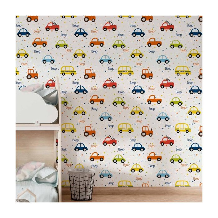 Papel de Parede Adesivo Carrinhos Quarto Infantil Beep 10m