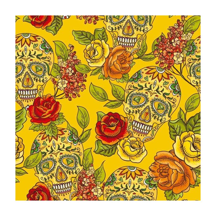 Papel de Parede Adesivo Caveira Mexicana Amarelo Teen 10m