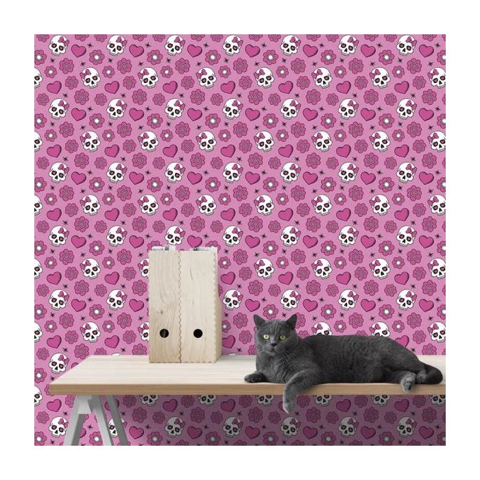 Papel de Parede Adesivo Caveira Rosa 133455194