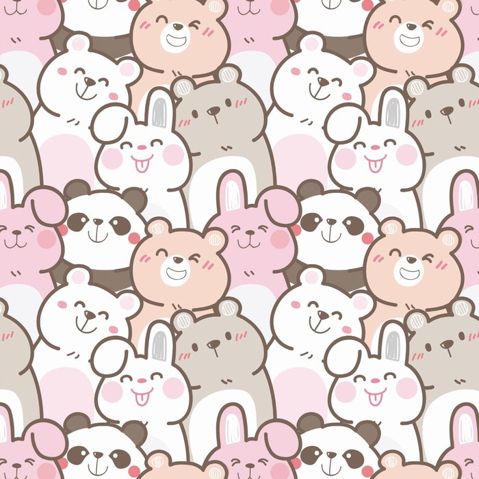 Papel de Parede Adesivo Desenho de Ursinhos e Coelhos 18m