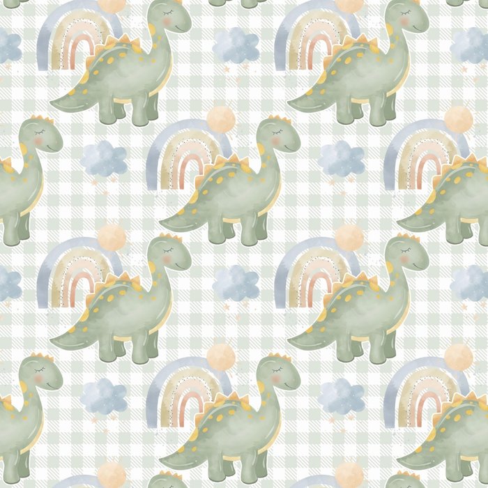 Papel de Parede Adesivo Dinossauro Baby Xadrex Verde 3m
