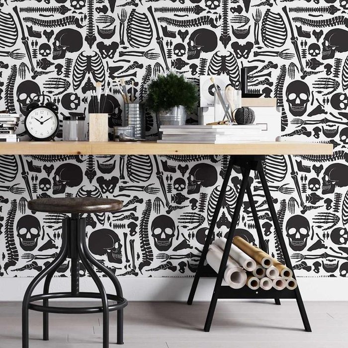 Papel De Parede Adesivo Esqueleto Preto N05092 0,58X3,00M