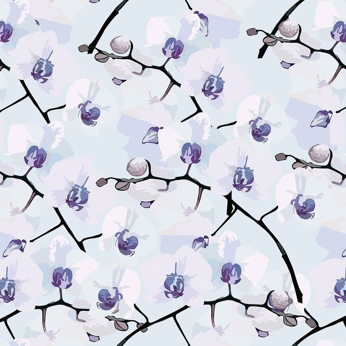 Papel de Parede Adesivo Floral Flores Orquídeas Brancas Roxas Fundo Azul Claro - SSFL-074 SETE SABA