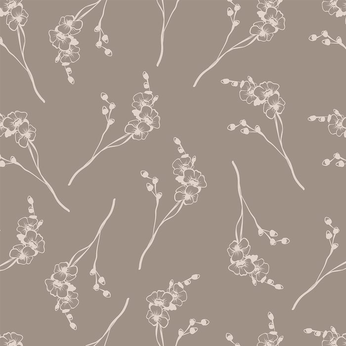 Papel de Parede Adesivo Floral Marrom com Orquídeas em Bege - Ssfl-017 Marrom