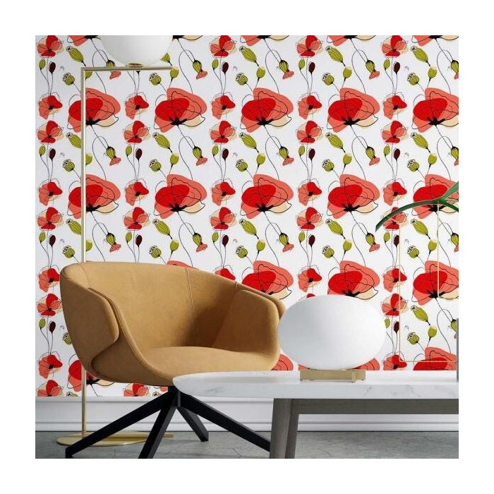 Papel de Parede Adesivo Flores Vermelhas N03098 0,58X2,5M